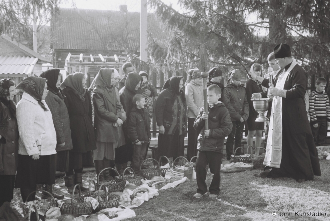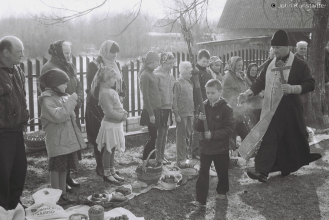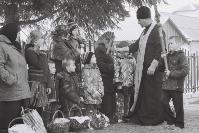 Blessing of Easter Bread for Tsjerabljuki, Azdamichy, Holy Saturday 2012. Асьвячэньне кулічоў для цераблюкоў і цераблічанак, Аздамічы, Вялікая Субота 2012 года. After circling the church twice to bless parishioners’ bread with incense and then water, Father Aljaksandr circles a third time so parishioners can kiss the cross. He carries out this blessing for parishioners from… Continue reading Photo of the Day for May 27, 2012